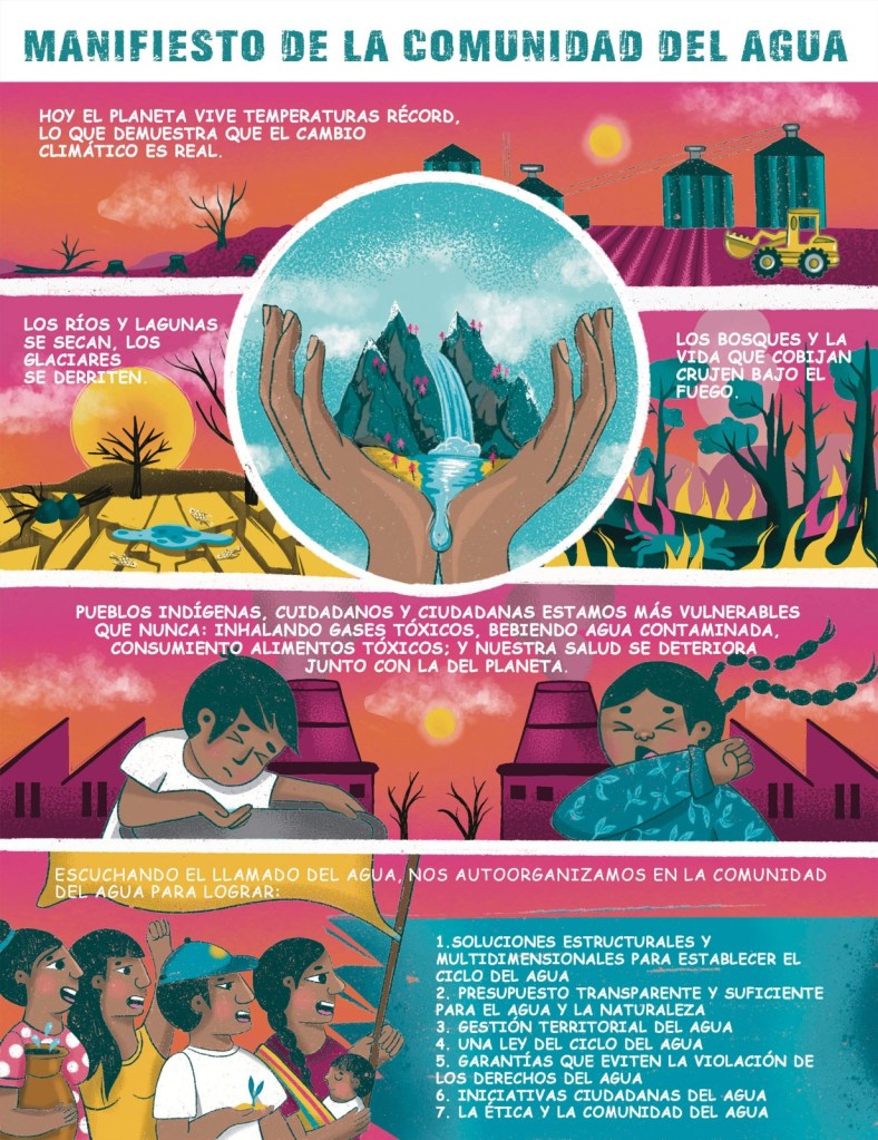 Conozca y difunda de manera ilustrada las siete propuestas de la Comunidad del Agua de la cual forman parte organizaciones, instituciones, colectiv@s y activistas autoconvocados. Haga click aquí para leer el «Manifiesto del Agua«.
